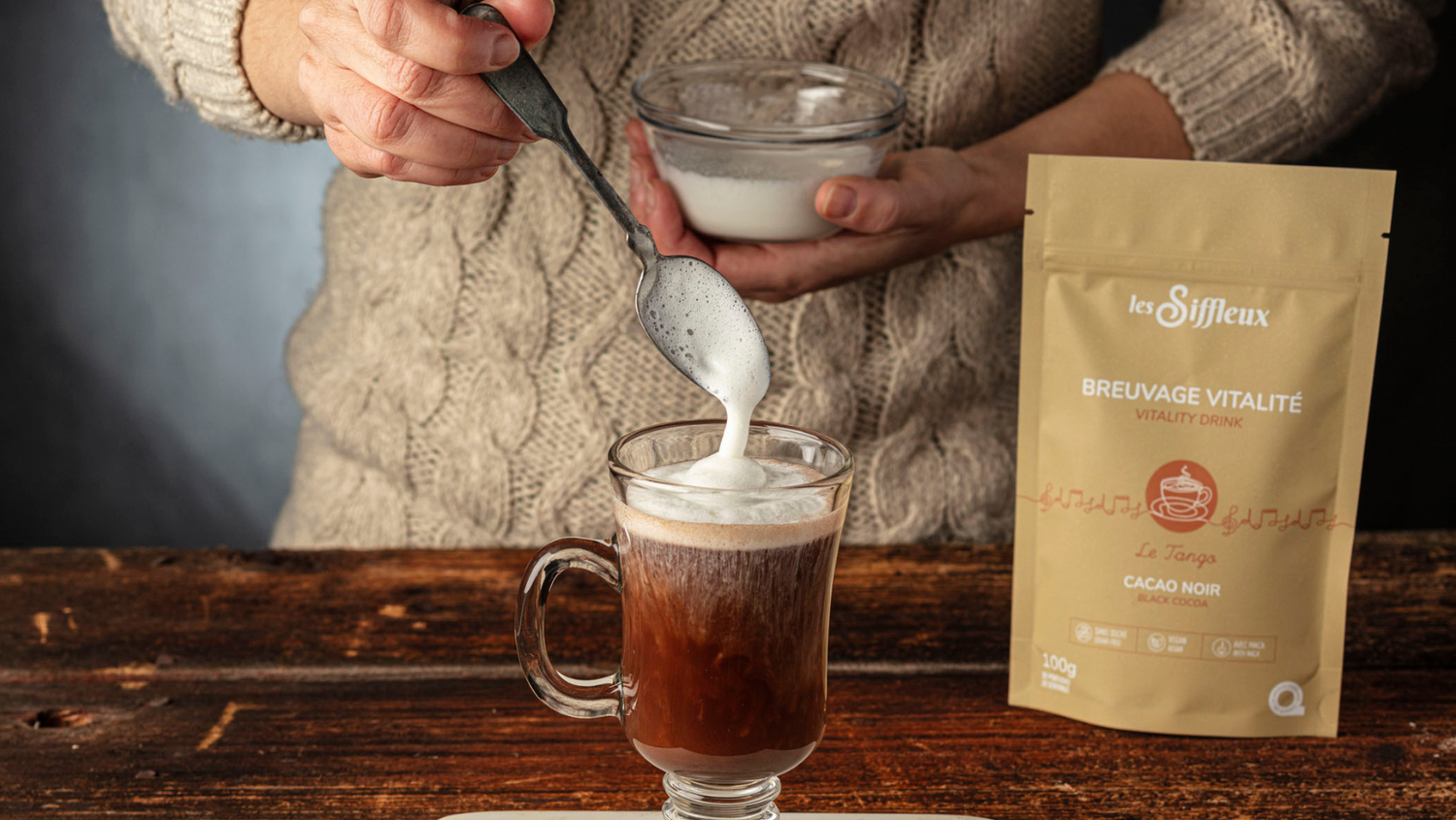 TANGO is full of seduction. It's a tight dance between dark chocolate and maca root. Maca helps with libido, and energy. Not for nothing did we call our drink the TANGO!